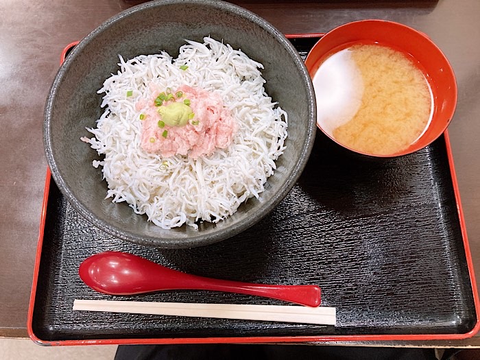 しらすネギトロ丼にした!!せっかくなら生シラスの方が良かったか!?店も色々あるからどこが良いとかわからないので何となくの所に入った!