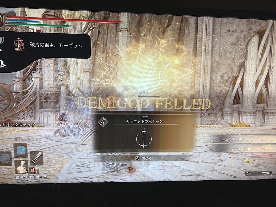 ボスを倒した先は黄金樹に拒まれているらしくて、通れない!